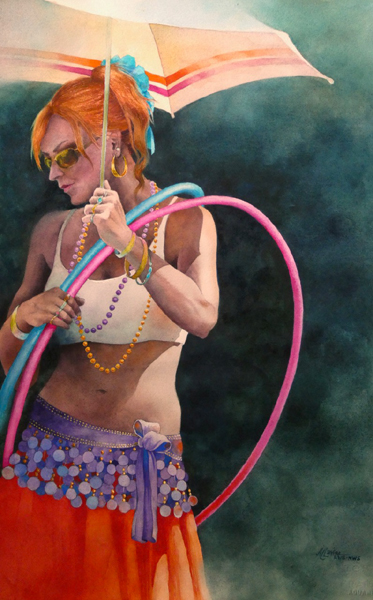 "Hoopla" is an un-framed, watercolor on paper.