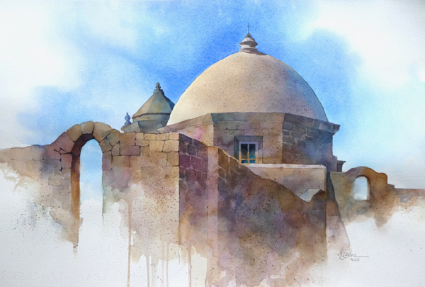 "Mission" is an un-framed, watercolor on paper.