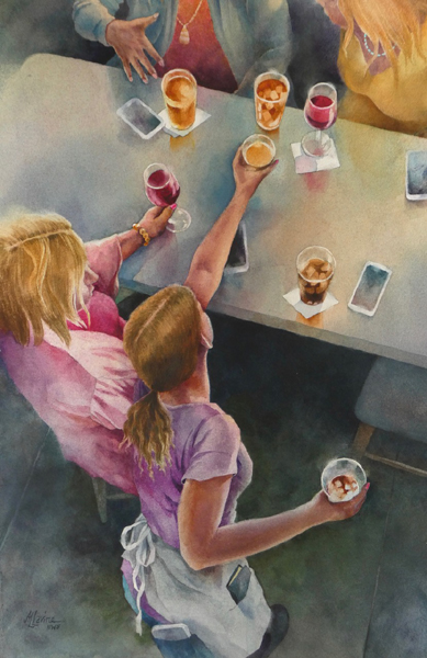 "Next Round" is an un-framed, watercolor on paper.